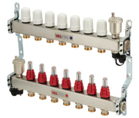 Коллекторная группа с расходомерами нержавеющая сталь Valtec 1 ВР(г) х 7 выходов 3/4 НР(ш) ЕК х 1 ВР(г)