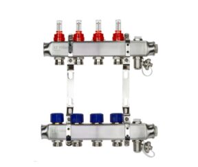 Коллекторная группа с расходомерами нержавеющая сталь Stout 1 ВР(г) х 4 выхода 3/4 НР(ш) ЕК х 1 ВР(г)