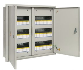 Первоначальная цена составляла 3193 ₽.3100 ₽Текущая цена: 3100 ₽.шт.Щит распределительный встраиваемый EKF PROxima ЩРВ-48 металлический IP31 650х340х120 мм 48 модулей с замком