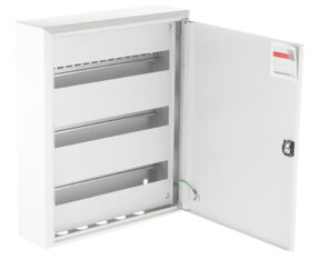 Первоначальная цена составляла 65 ₽.63 ₽Текущая цена: 63 ₽.шт.Щит распределительный навесной EKF PROxima ЩРН-54 металлический IP31 480х400х120 мм 54 модуля