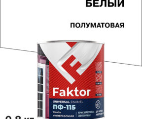 Первоначальная цена составляла 5295 ₽.5116 ₽Текущая цена: 5116 ₽.шт.Эмаль ПФ-115 Faktor белая полуматовая 0,8 кг