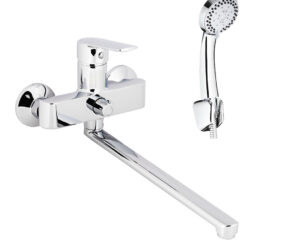 Смеситель для ванны Decoroom DR22 хром однорычажный с длинным изливом с лейкой (DR22043)