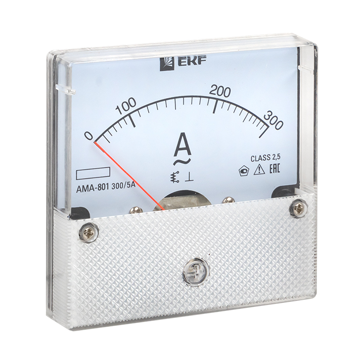 Амперметр аналоговый EKF PROxima AMA-801 80х80 мм IP20 300 А трансформаторное подключение на 5 модулей (ama-801-300)