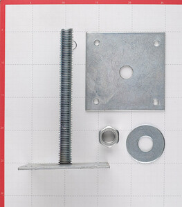 Состоит из двух оцинкованных стальных пластин, шпильки с метрической резьбой, шайбы и гайки.