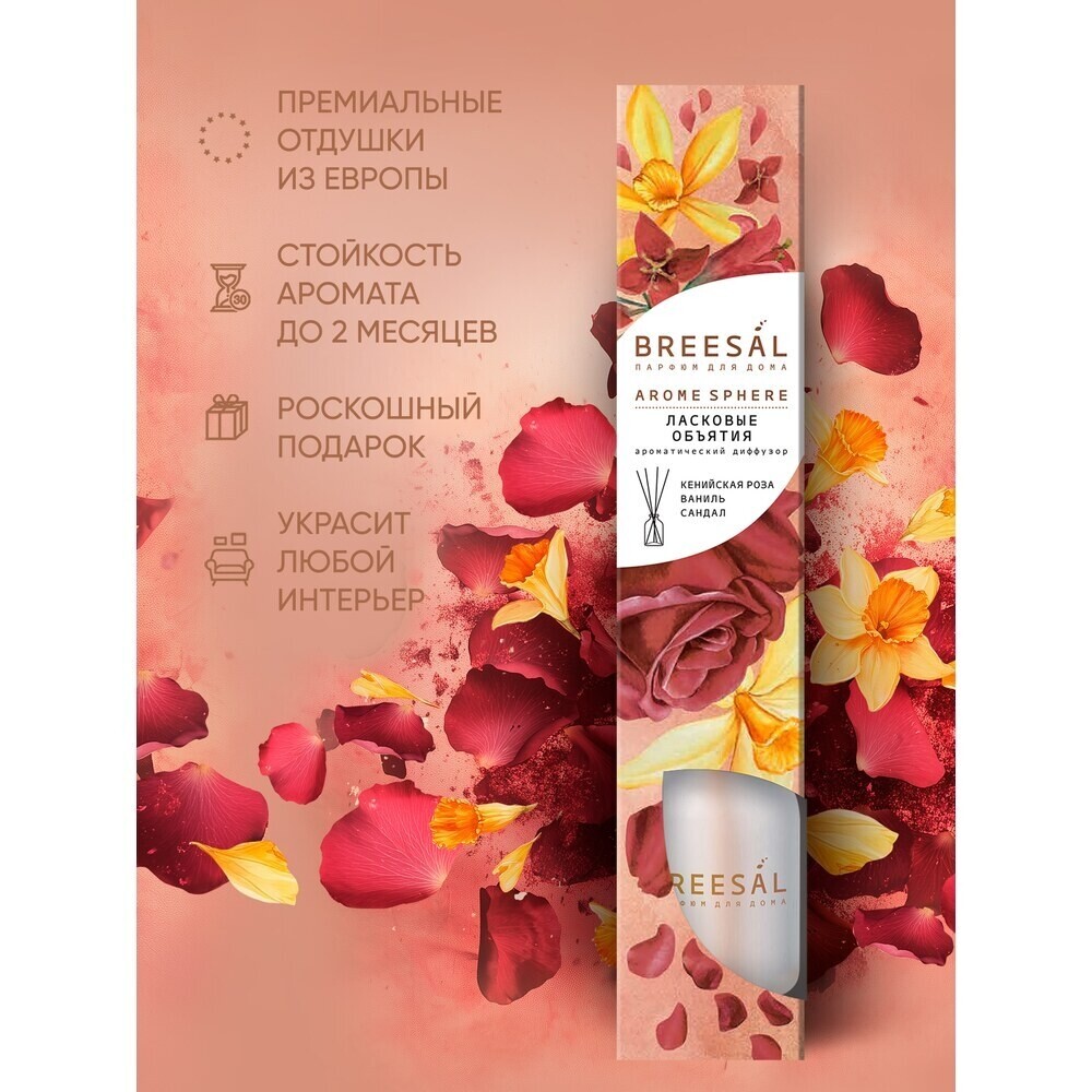 Диффузор ароматический для дома Breesal – это многогранный аромат в стеклянном флаконе с натуральными древесными палочками, который впишется в любой интерьер и создаст в нем особую атмосферу.