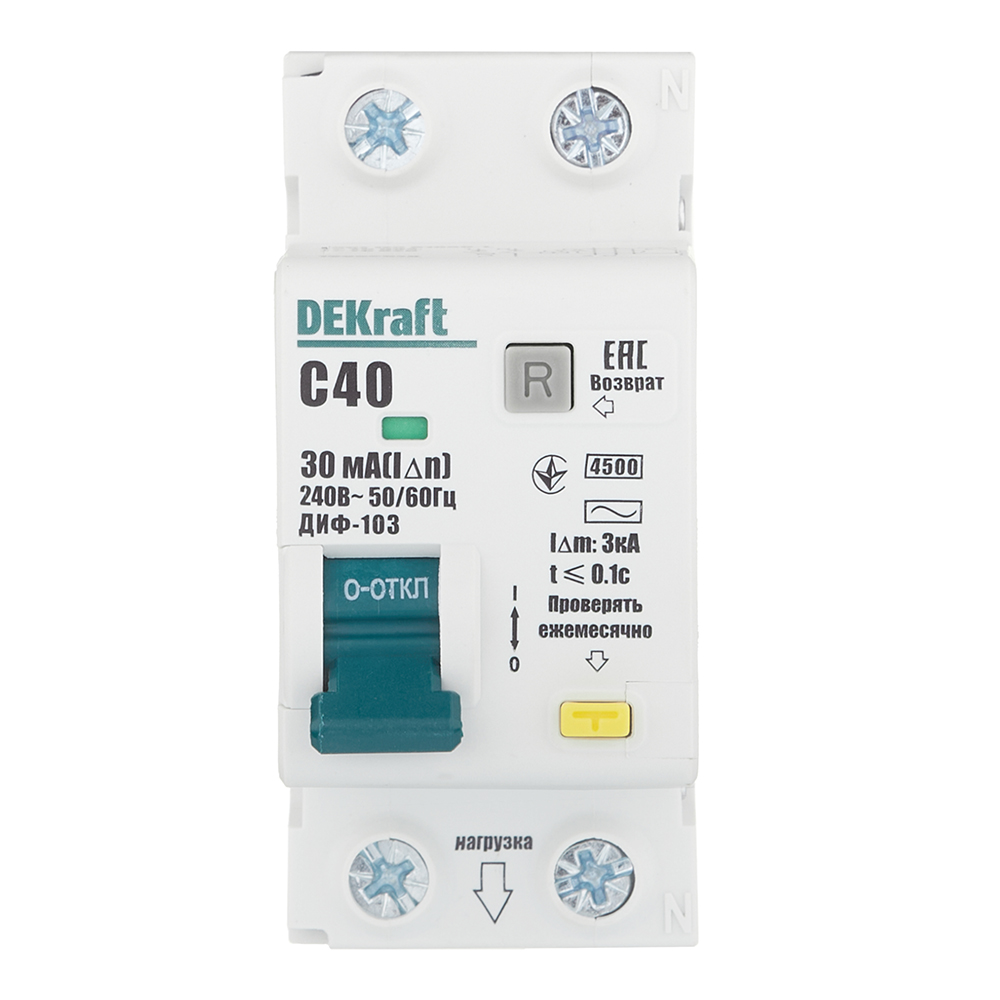 Автомат дифференциальный Dekraft ДИФ-103 40А 1P+N тип AC 30 мА 4,5 кА компактный (16056DEK)