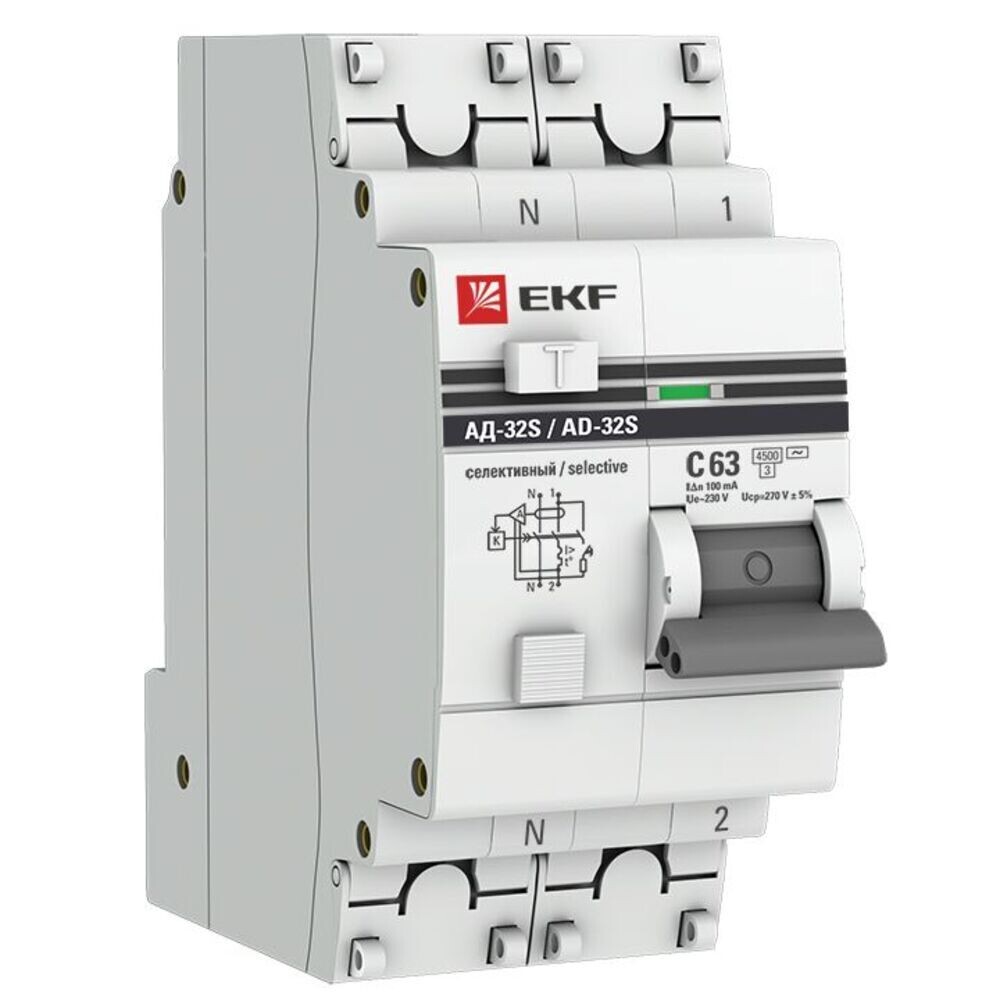 Автомат дифференциальный EKF PROxima АД-32 63А 1P+N тип AC 100 мА 4,5 кА (DA32-63-100S-pro)