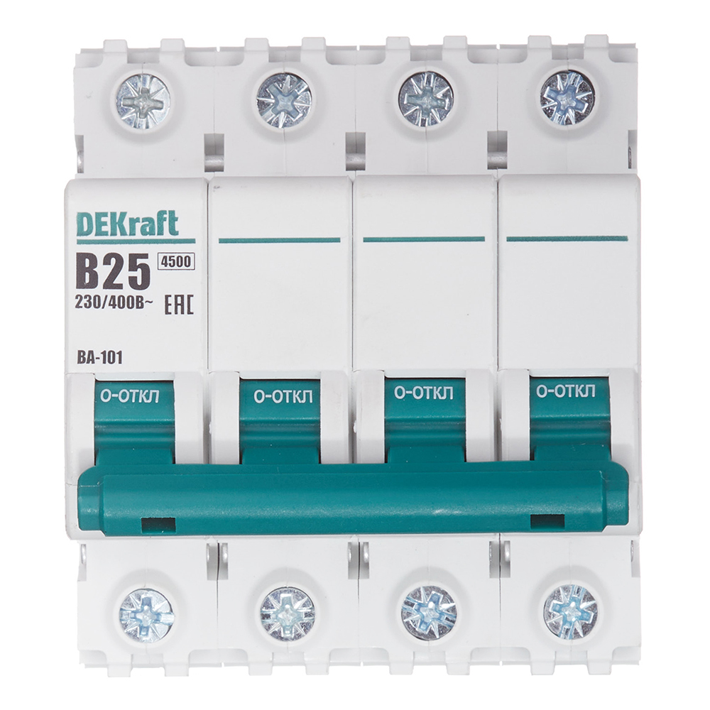 Автоматический выключатель модульный Dekraft BA-101 4Р 25А тип B 4,5 кА 230/400 В (11044DEK)