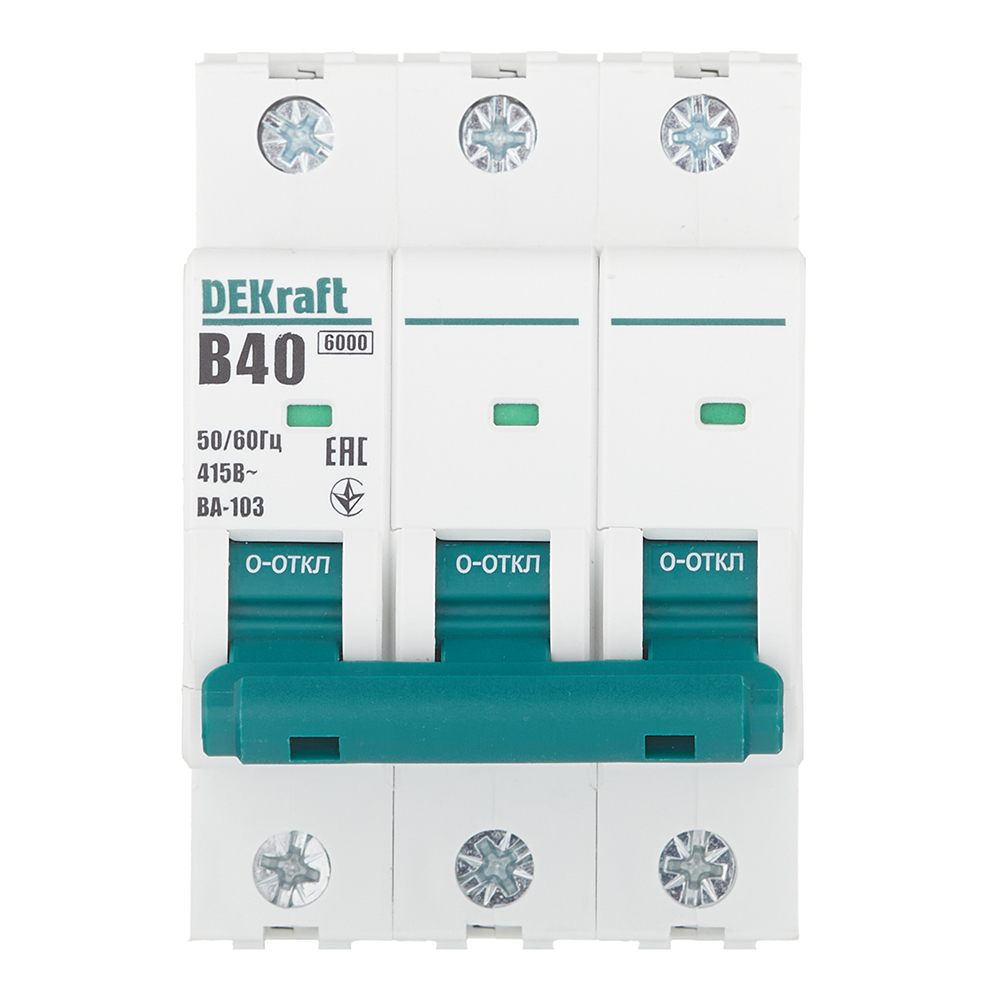 Автоматический выключатель модульный Dekraft BA-103 3P 40А тип B 6 кА 230/400 В (12245DEK)