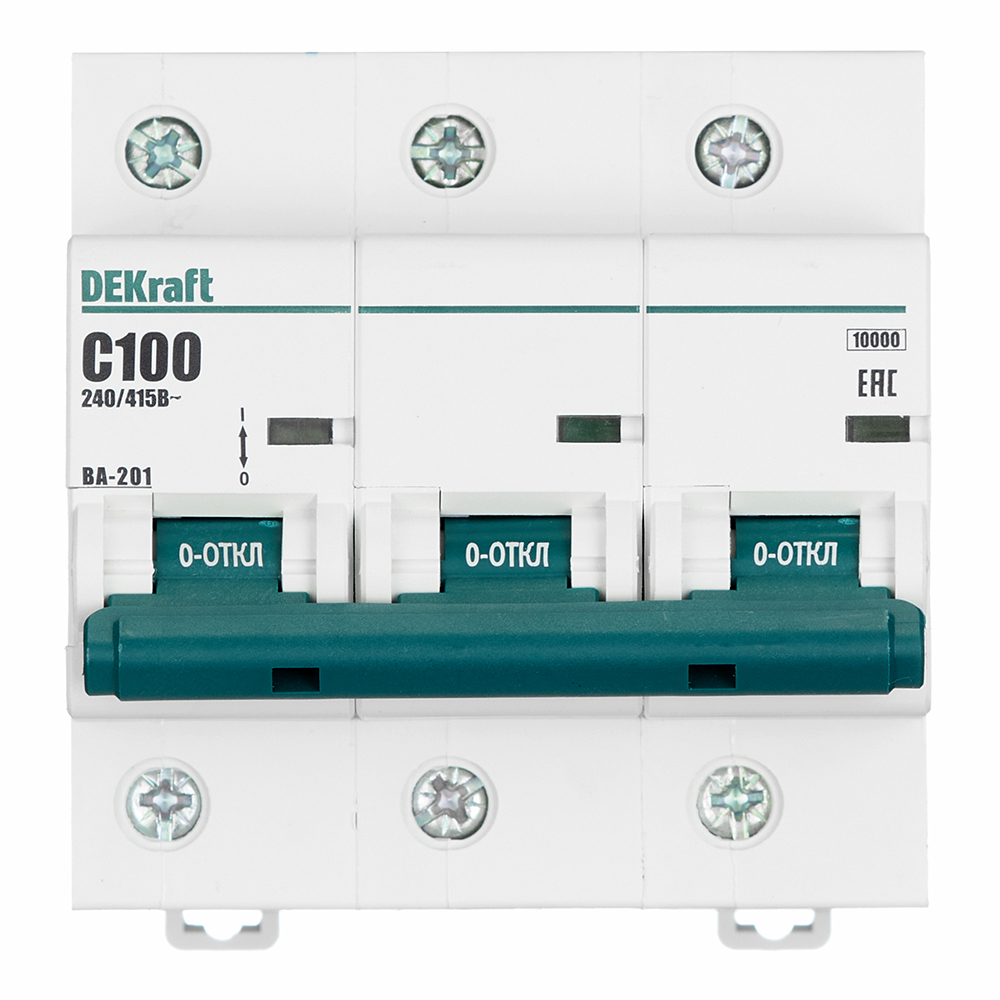 Автоматический выключатель модульный Dekraft ВА-201 3P 100А тип C 10 кА 400 В (13009DEK)