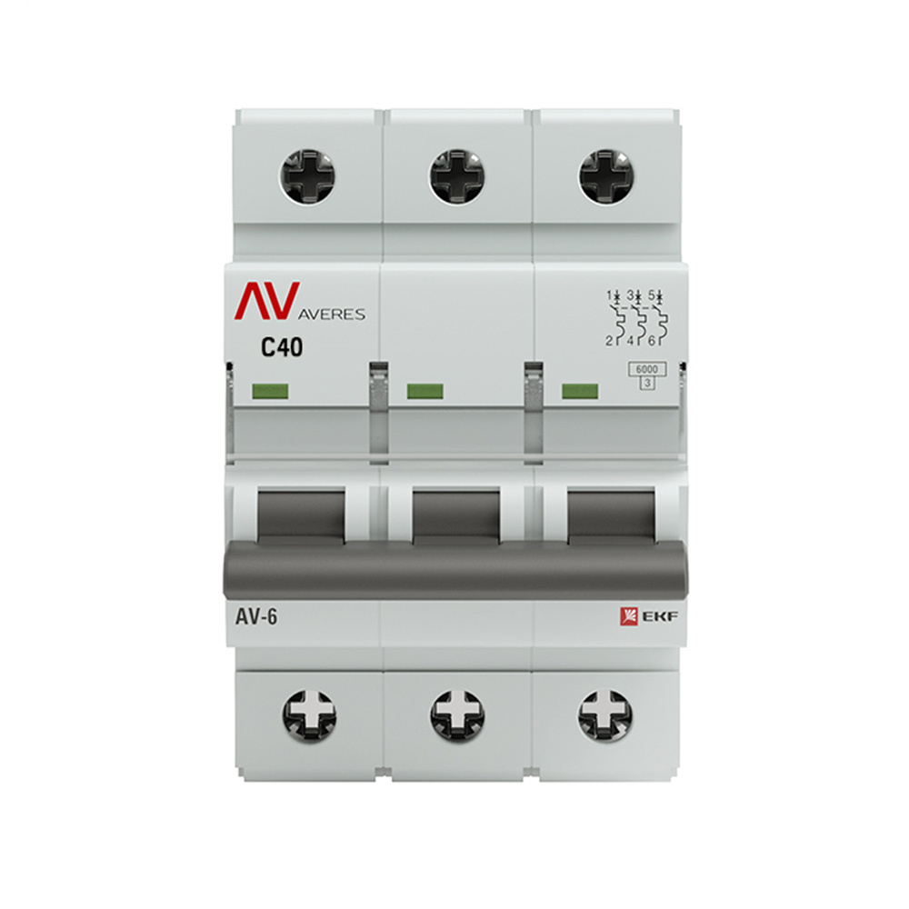 Автоматический выключатель модульный EKF Averes AV-6 3Р 40А тип C 6 кА 400 В (mcb6-3-40C-av)
