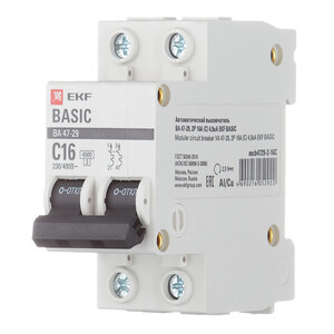 Автоматический выключатель модульный EKF Basic ВА 47-29 2P 16А тип C 4,5 кА 230 В (mcb4729-2-16C)