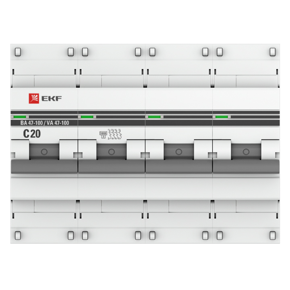 Автоматический выключатель модульный EKF PROxima ВА 47-100 4P 20А тип C 10 кА 400 В (mcb47100-4-20C-pro)