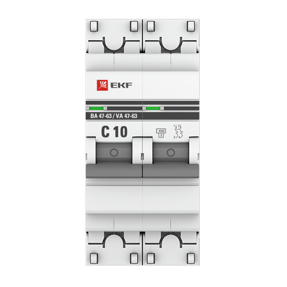 Автоматический выключатель модульный EKF PROxima ВА 47-63 2Р 10А тип C 4,5 кА 230 В (mcb4763-2-10C-pro)