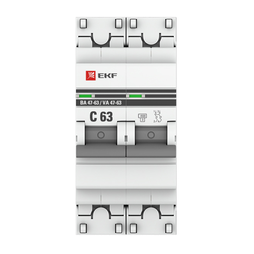Автоматический выключатель модульный EKF PROxima ВА 47-63 2Р 63А тип C 4,5 кА 230 В (mcb4763-2-63C-pro)
