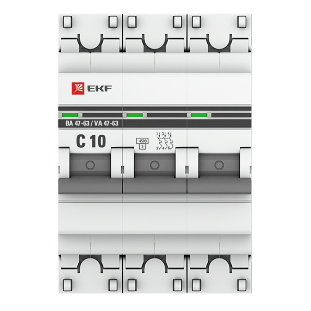 Автоматический выключатель модульный EKF PROxima ВА 47-63 3Р 10А тип C 4,5 кА 400 В (mcb4763-3-10C-pro)