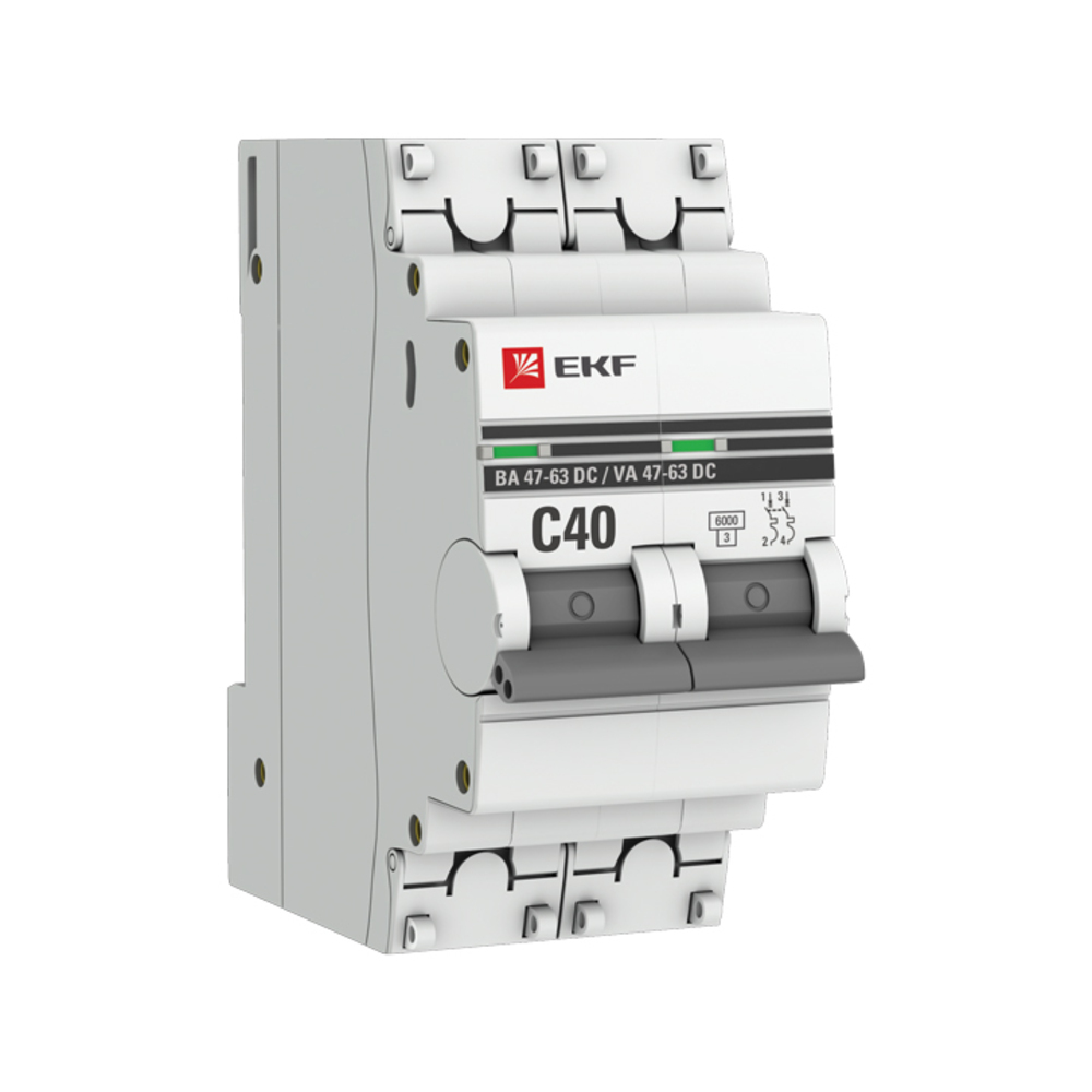 Автоматический выключатель модульный EKF PROxima ВА 47-63 DC 2Р 40А тип C 6 кА 230 В (mcb4763-DC-2-40C-pro)