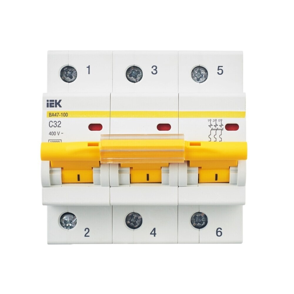 Автоматический выключатель модульный IEK Karat ВА47-100 3P 32А тип C 10 кА 400 В (MVA40-3-032-C)