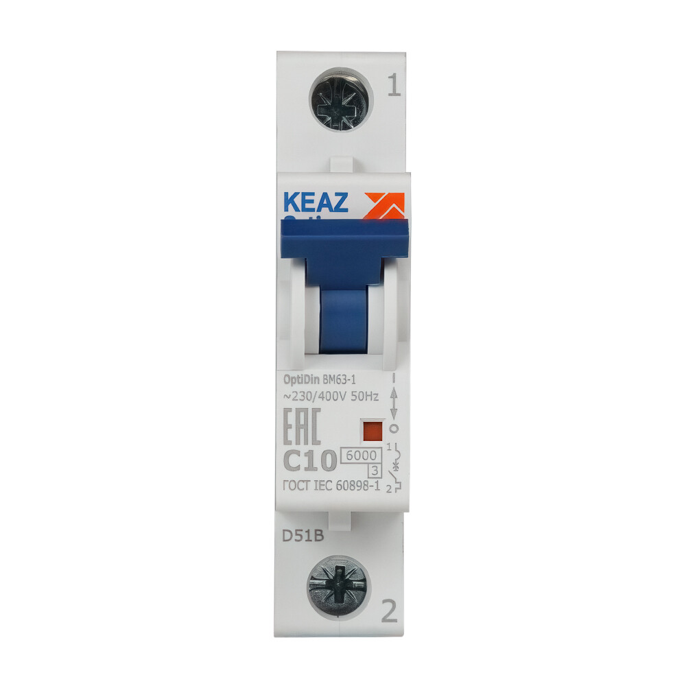 Автоматический выключатель модульный КЭАЗ OptiDin 1P 10А тип C 6 кА 220 В (260501)