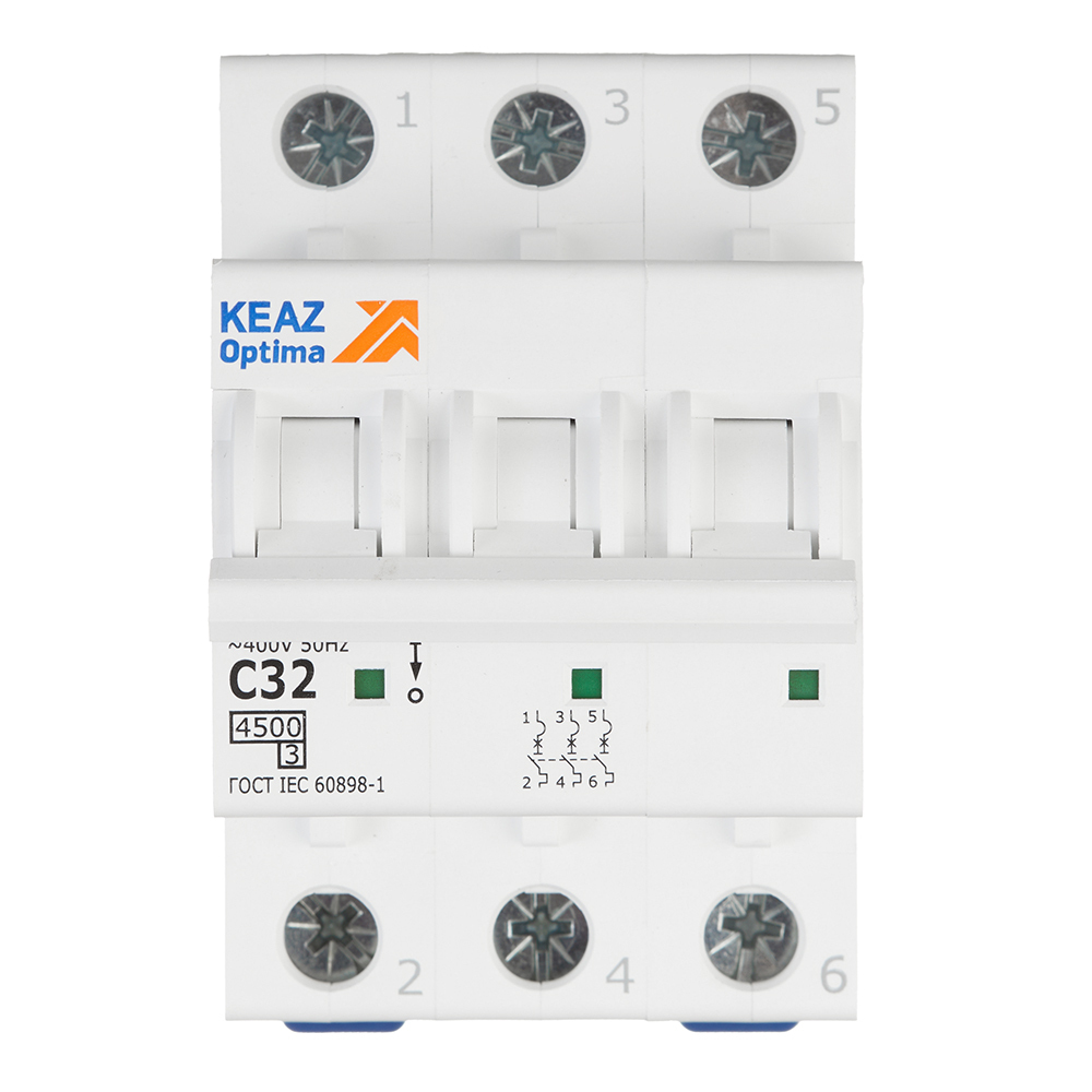 Автоматический выключатель модульный КЭАЗ OptiDin BM63 3P 32А тип C 4,5 кА 230/400 В (326815)