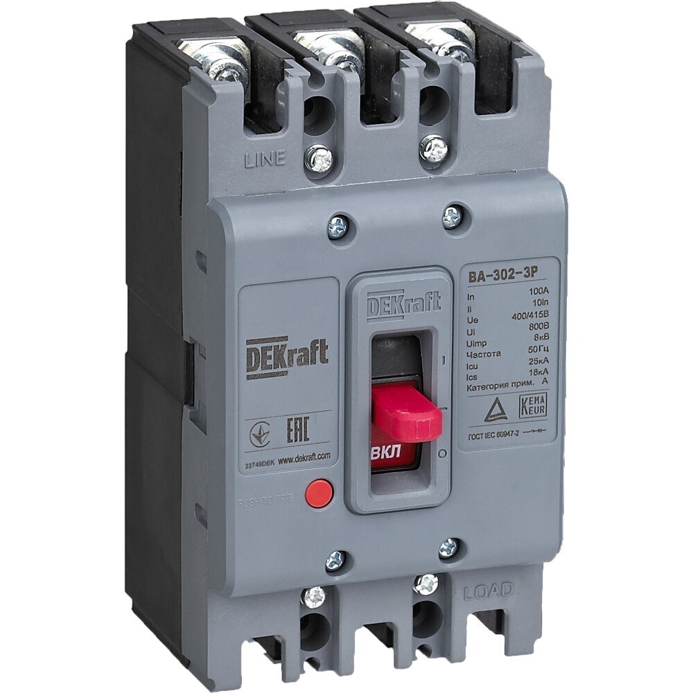 Автоматический выключатель в литом корпусе Dekraft ВА-302 3P 80А тип D 25 кА 415 В (22748DEK)