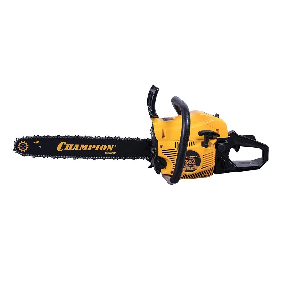 Мощная бензопила Champion 362-18 представляет собой легкую бытовую пилу для работ в саду, мелкого строительства или ремонта. Пила бензиновая оснащена надежным 2-тактным двигателем мощностью 3,5 л.с. и рабочим объемом 61,5 см3, что обеспечивает высокую производительность. Двигатель оборудован системой легкого запуска. Мотопила имеет топливный насос (праймер) и комбинированную систему управления заслонками карбюратора Auto. Объем топливного бака составляет 0?55 л, который заправляется топливной смесью, состоящей из бензина АИ-92 и масла для 2-тактных двигателей.