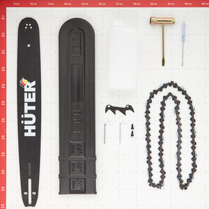 Бензопила — 1 шт; Шина — 1 шт; Цепь — 1 шт; Защитный кожух шины — 1 шт; Ёмкость для смешивания топливной смеси — 1 шт; Инструменты для сборки/настройки пилы — 1 шт; Паспорт (инструкция) – 1 шт.