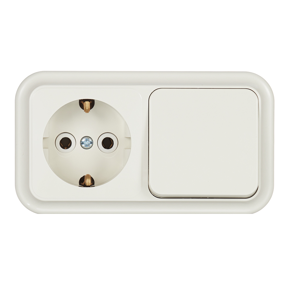Блок выключатель и розетка Svet одноклавишный накладной бежевый (EV0362-5122)