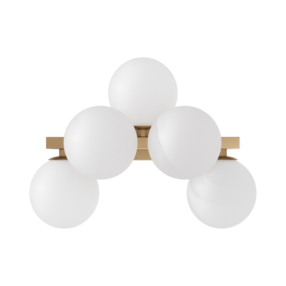Масштабные скульптурные композиции, образованные многочисленными шарами из выдувного стекла, формируют неповторимый облик светильников серии. На полированных металлических ветвях установлены тонированные плафоны, которые мягко рассеивают и приглушают свет ламп. Модели серии представлены в трех цветах — золото, хром и латунь. Высота подвесных светильников регулируется длиной троса. Серия представлена потолочными, подвесными светильниками, и бра.