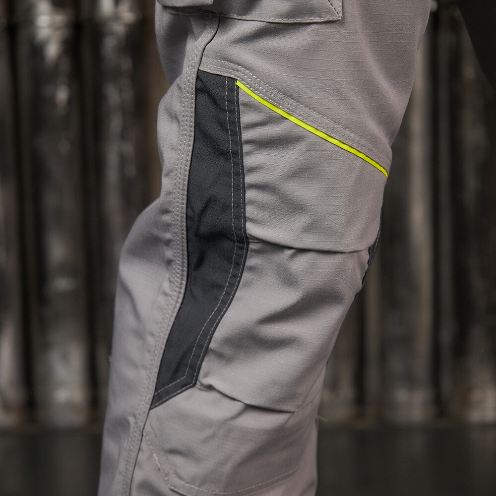 Брюки с застежкой на молнию и пуговицу, с большим количеством накладных и прорезных карманов. Эластичная лента по бокам по линии талии в поясе брюк. Усилительные накладки в области колена в виде кармана для наколенника. Усиленная вставка в области промежности. Усиленные тройные швы. Повышенные прочностные свойства ткани благодаря технологии Рипстоп.