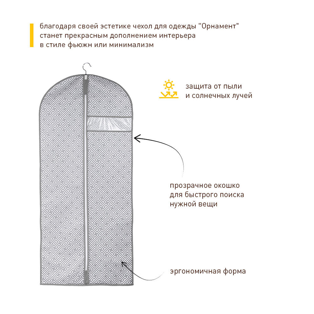Чехол для одежды Орнамент 1300х600 мм серый