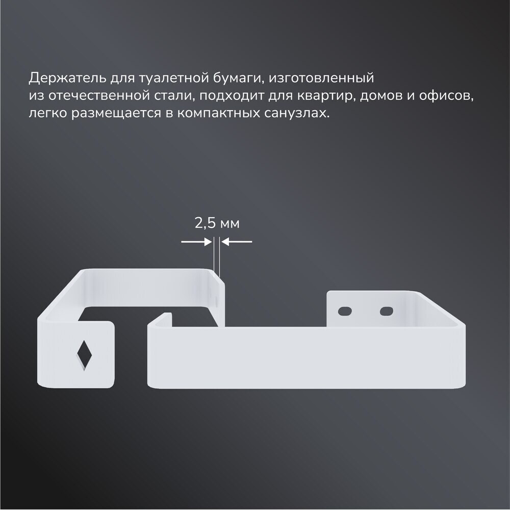 Держатель для туалетной бумаги Scandi – это универсальный аксессуар, который прекрасно впишется в интерьер любой квартиры, дома или офиса. Изготовленный из отечественного металла шириной 2,5 мм, он отличается прочностью и долговечностью. Эргономичная конструкция позволяет эффективно использовать пространство, что делает его идеальным решением для маленьких санузлов.