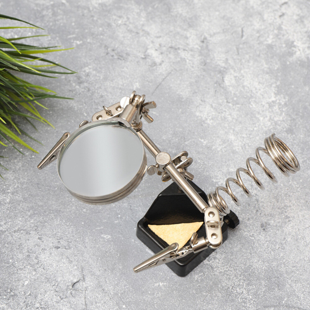 Держатель «третья рука» с лупой х2.5 служит главным образом при проведении паяльно-сборочных работ в электронике, ювелирном деле, сборке и ремонте для зажима мелких деталей в любом нужном положении, к…