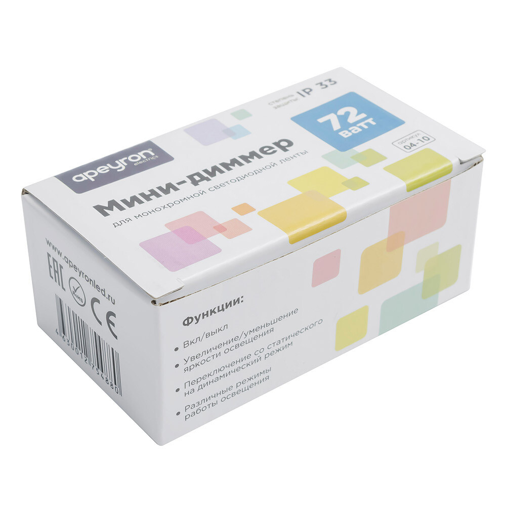 Диммер для светодиодной ленты 12/24 В 72 Вт IP20 Apeyron с пультом (04-10)