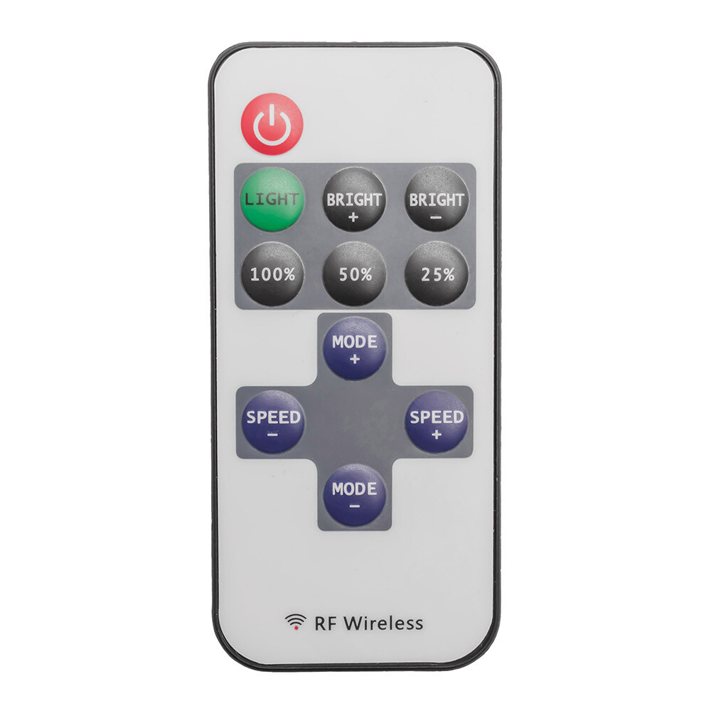 Предназначен для управления монохромной светодиодной лентой. С помощью него можно включать или выключать светодиодную ленту, отрегулировать ее яркость, а также использовать различные динамические режимы и отрегулировать скорость их работы. Прибор может работать как от напряжения 12 В, так и 24 В. Важно отметить, что в зависимости от того с каким напряжением предстоит работать устройству, будет отличаться и максимальная мощность нагрузки, которую можно подключить к нему. Так, при напряжении 12 В максимальная нагрузка будет равна 72 Вт, а при напряжении 24 В уже 144 Вт. Дистанционный пульт управления передает сигнал по радиоканалу, благодаря чему сам прибор можно убрать из зоны видимости без потери сигнала от пульта. Управление осуществляется с помощью кнопок, расположенных на лицевой стороне пульта, который работает от 1-й батарейки CR202…