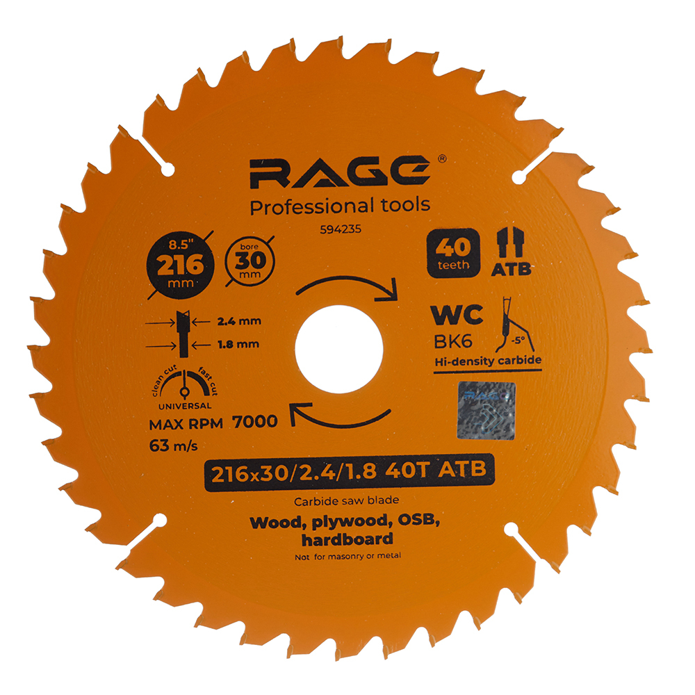 Диск пильный по дереву Rage by Vira Universal 216х30х1,8 мм 40 зубьев (594235)
