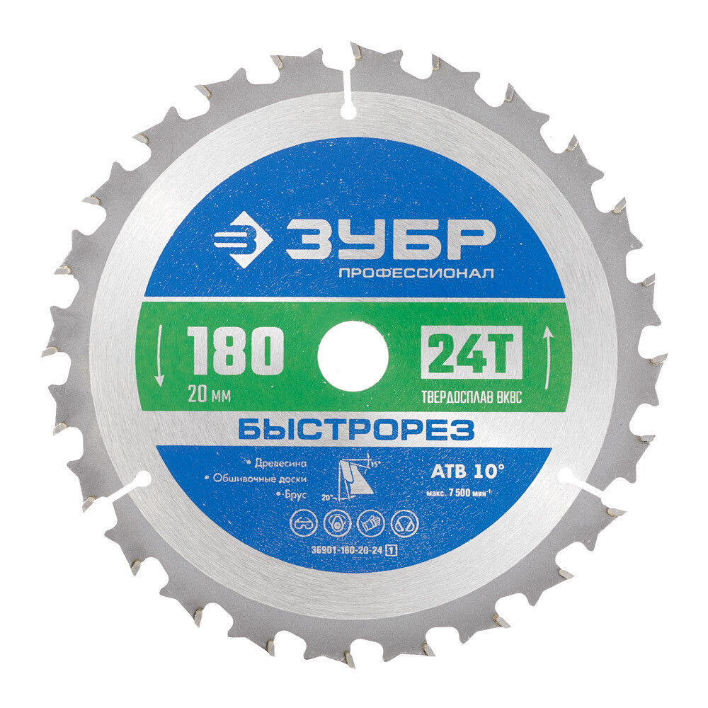 Диск пильный по дереву Зубр 180х20х1,6 мм 24 зуба (36901-180-20-24_z01)