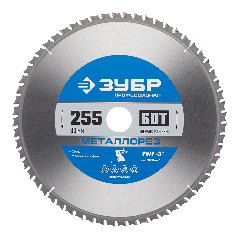 Диск пильный по металлу Зубр 255х30х1,8 мм 60 зубьев (36932-255-30-60)