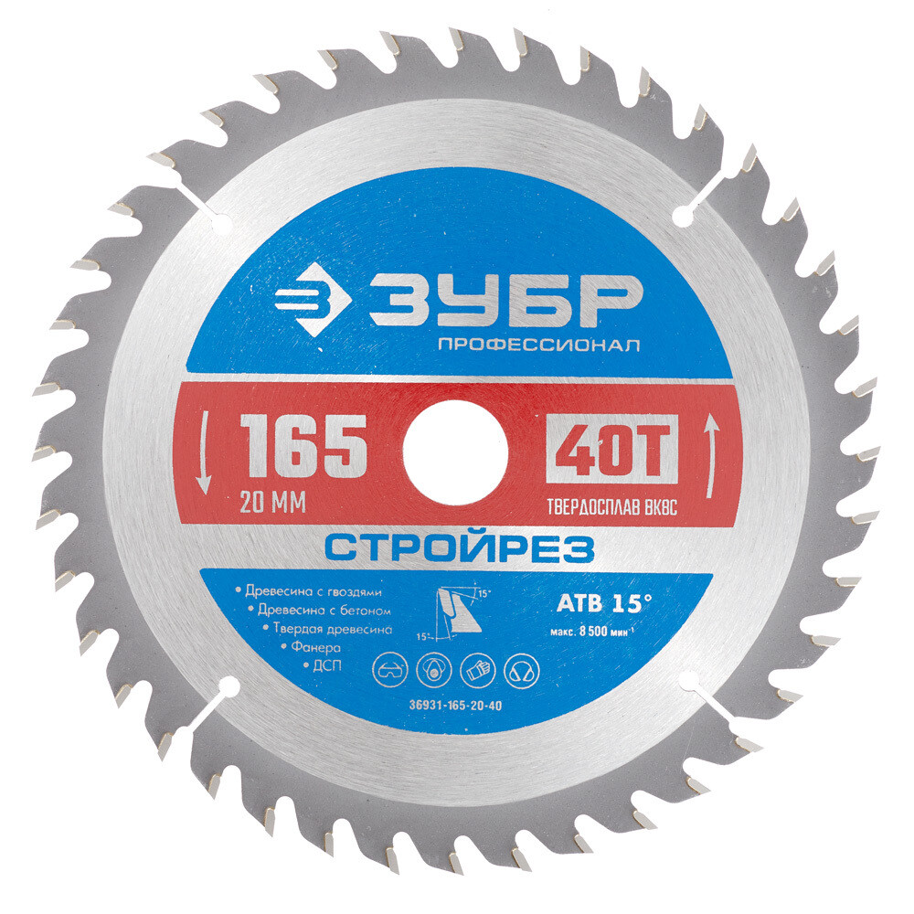 Диск пильный по строительной древесине Зубр 165х20х1,4 мм 40 зубьев (36931-165-20-40)