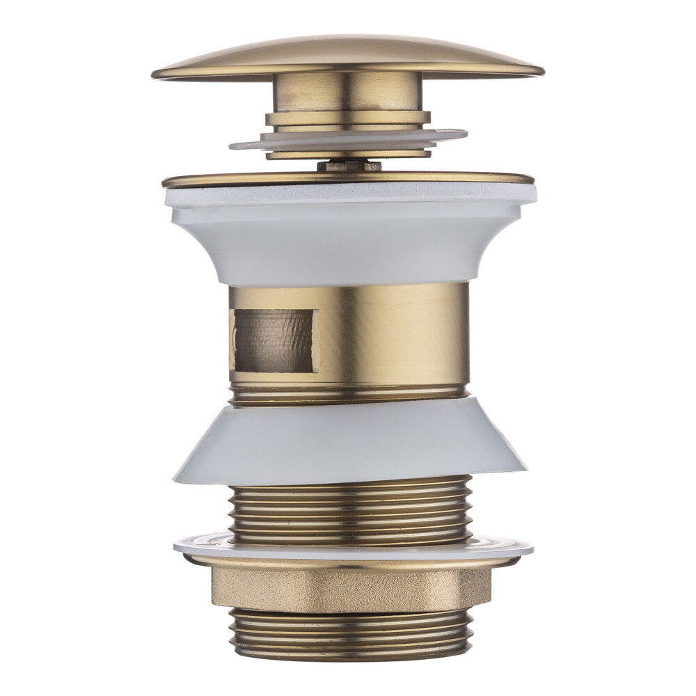 Донный клапан произведен из латуни, что обеспечивает устойчивость к царапинам и перепадам температур, делает его долговечным. Клапан оснащен практичным механизмом клик-клак, позволяющим легко закрыть или открыть слив воды одним нажатием пальца. Ширина – 66 мм.