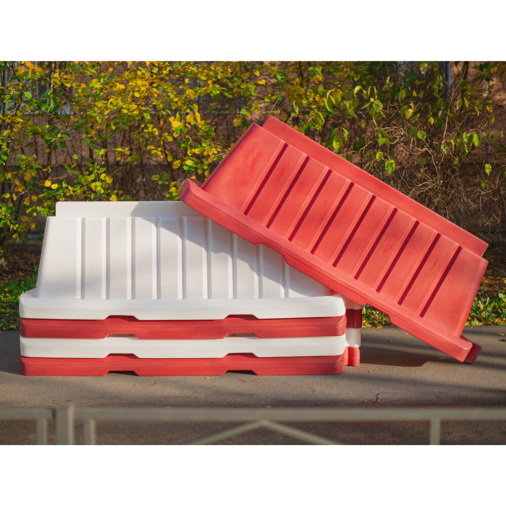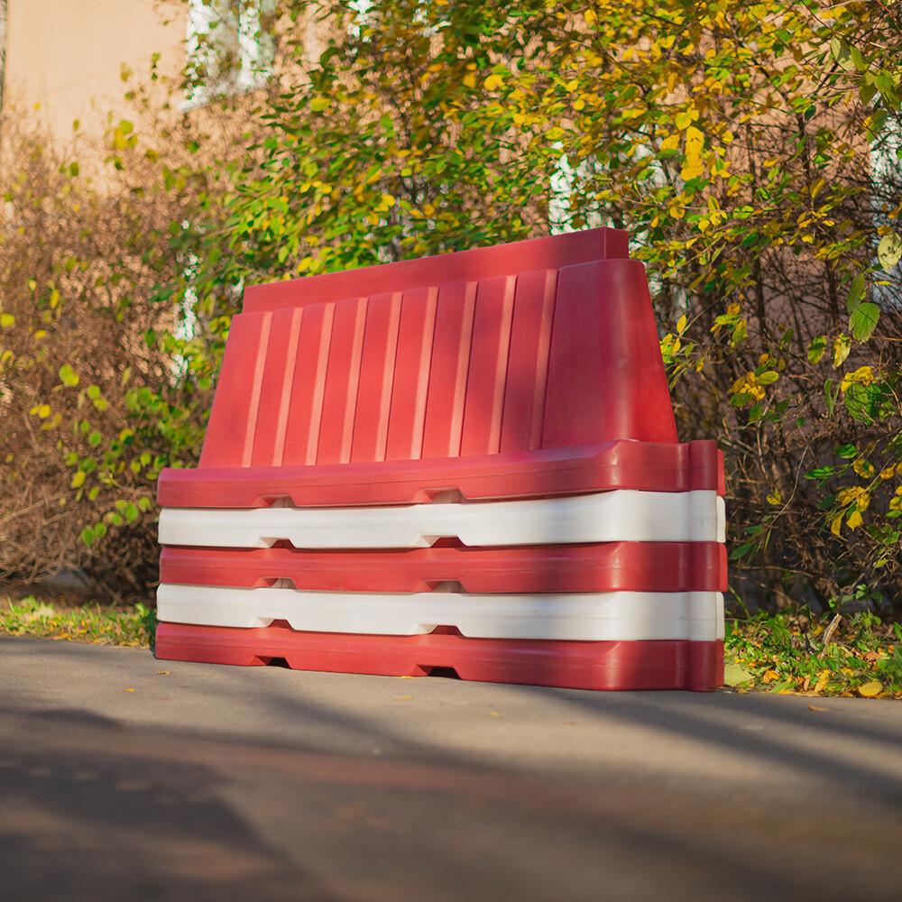 Вставной дорожный блок длиной 2000 мм является водоналивным. Объем жидкого балласта – 25 литров. Заливная горловина располагается на нижней платформе блока, в зоне замкового соединения. Для удобства эксплуатации блок снабжен сливной пробкой. Специальная форма блока обеспечивает простое и экономичное складирование.