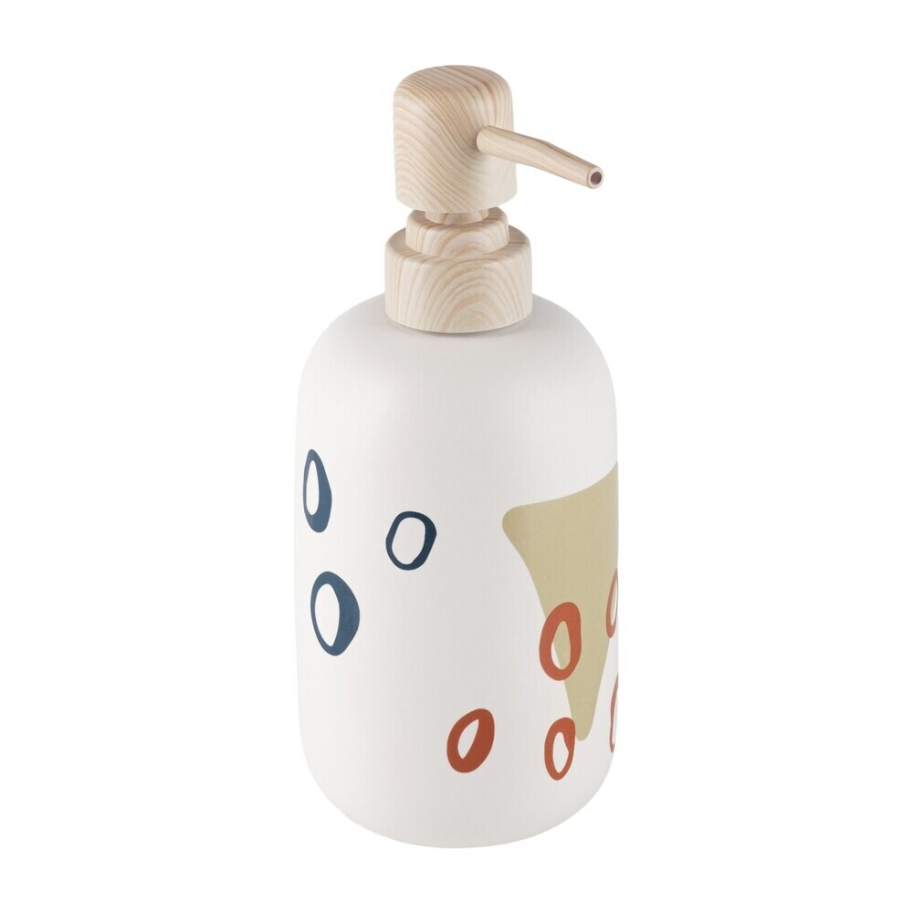 Дозатор для жидкого мыла — часть коллекции Reflection. Изделие из матовой белой керамики с пластиковой помпой под дерево и оригинальным дизайном в стиле абстракционизм. Простые понятные формы, универсальная цветовая гамма и немного наивные рисунки — аксессуар, который преобразит интерьер современной ванной.