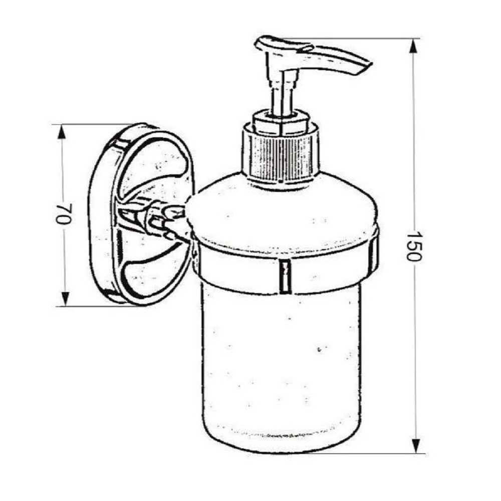 Дозатор подвесной с держателем предназначен для порционной подачи мыла, шампуней и других гелеобразных жидкостей. Изготовлен из матового стекла.