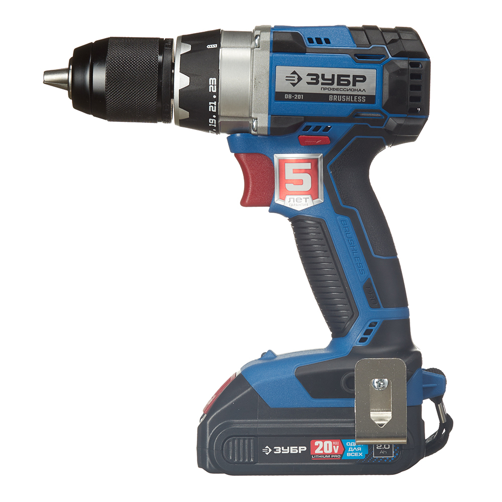 Дрель-шуруповерт аккумуляторная бесщеточная Зубр DB-201-22 20 В 2 Ач Li-Ion 2 АКБ и ЗУ