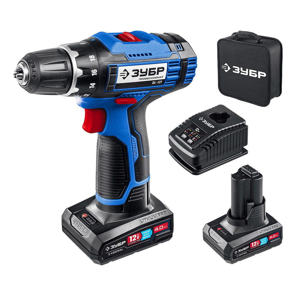 Дрель-шуруповерт аккумуляторная Зубр DL-121-42 12 В 4 Ач Li-Ion 2 АКБ и ЗУ