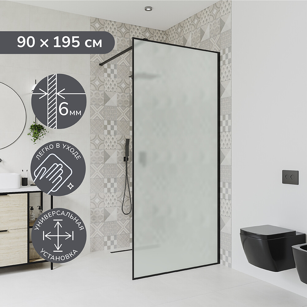Душевая перегородка Walk in Ulitka Prisma черная 90х195 см стекло матовое 6 мм (74104158)