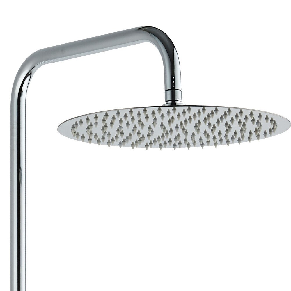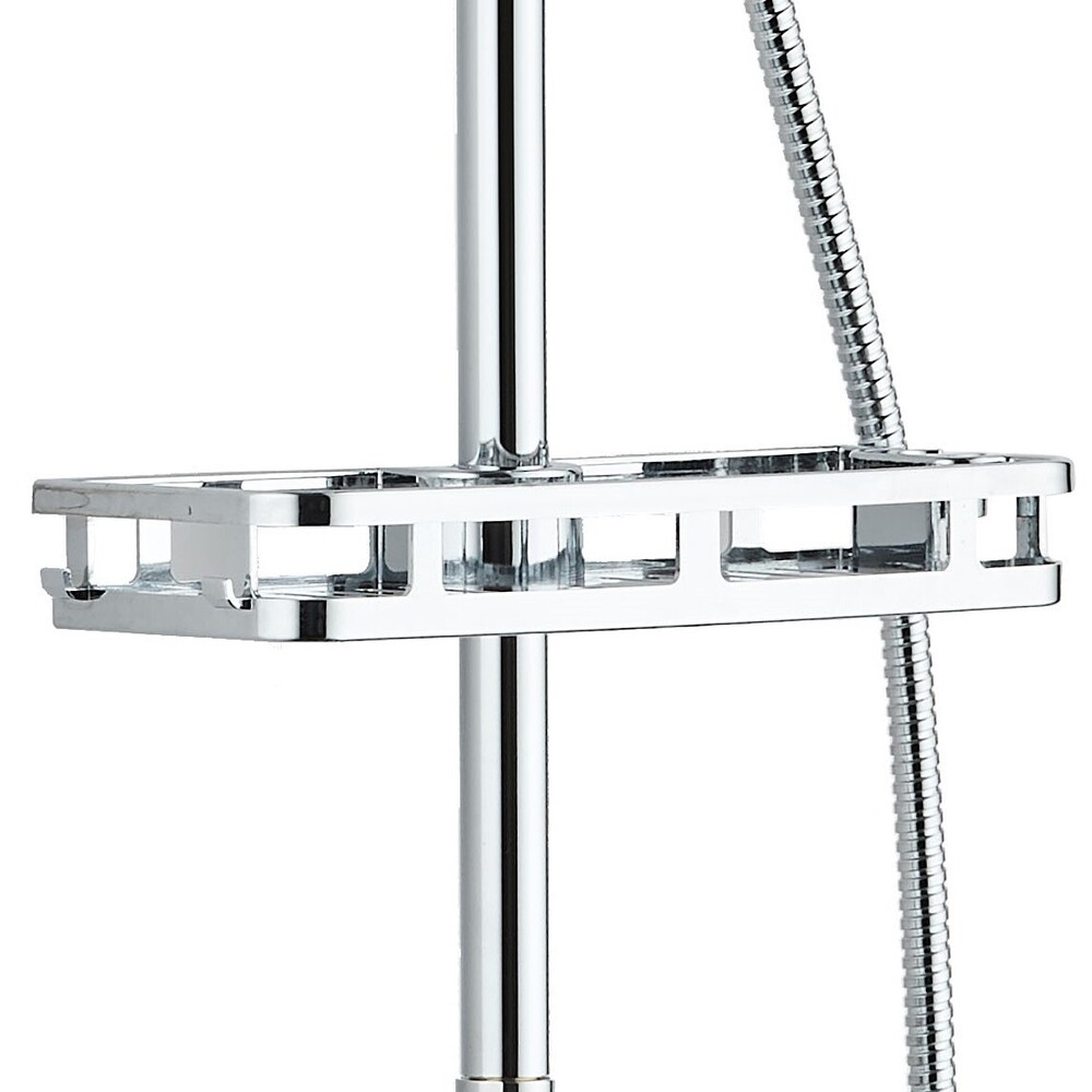 Душевая система с верхним душем, смесителем и полкой цвета хром сочетает в себе современный дизайн и высокое качество.