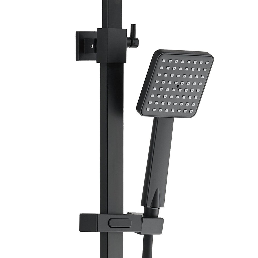 Душевая система с верхним душем и смесителем черного матового цвета сочетает в себе современный дизайн и высокое качество.