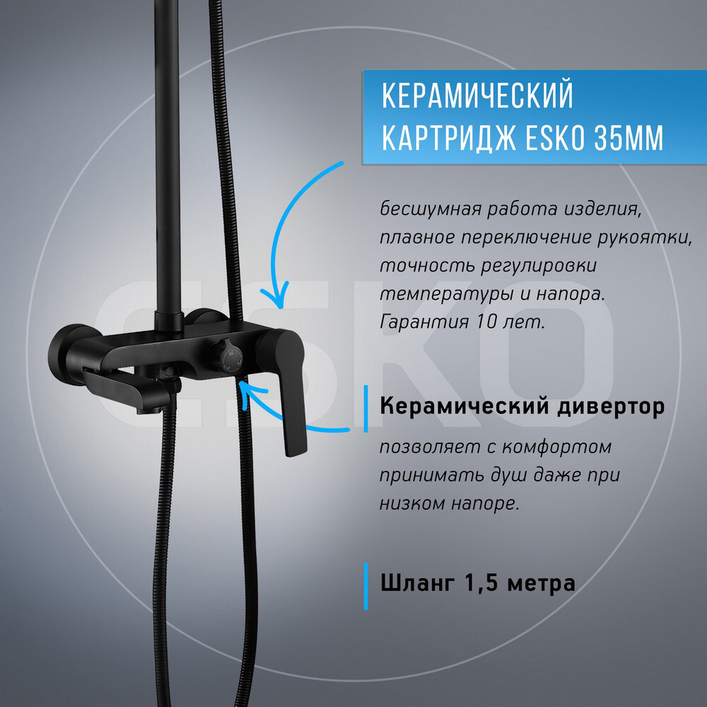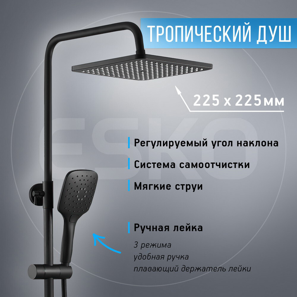 Душевая система Esko Singapore black с верхним душем с лейкой со смесителем черная (ST300BL)