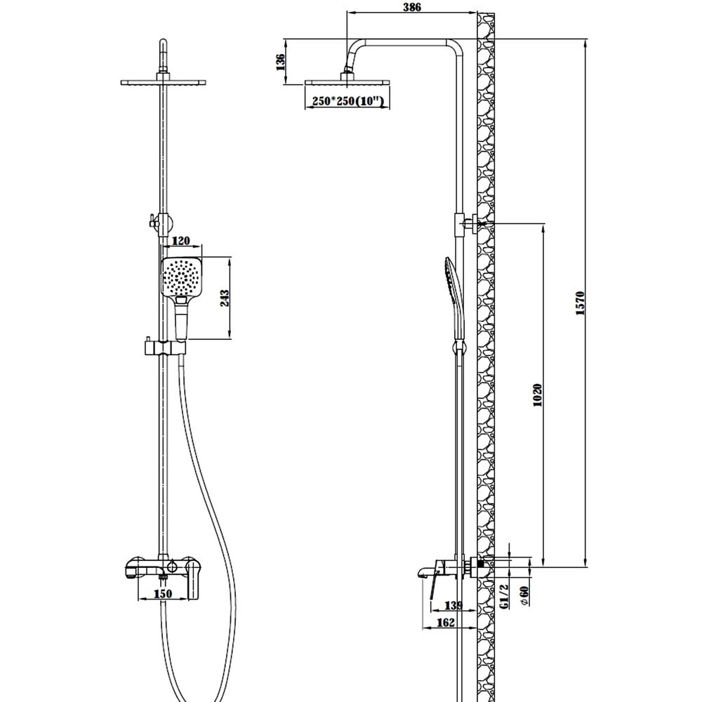 – телескопическая душевая штанга 1020-1570 мм комфортна для использования при любом росте;